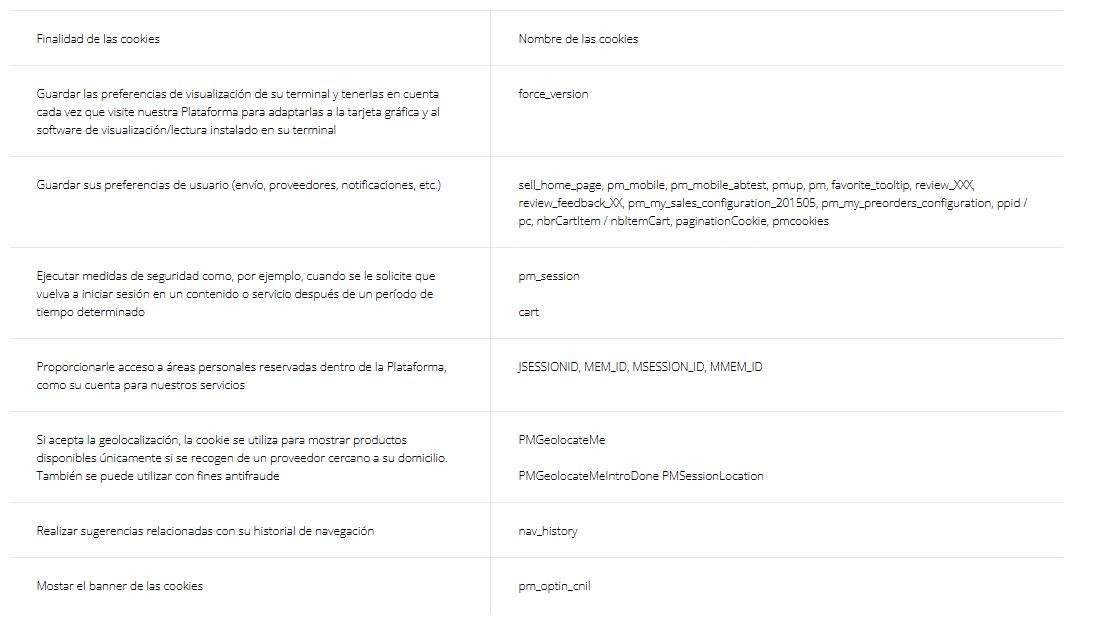 • Para mejorar su navegación en la Plataforma y para prestar los servicios que usted haya solicitado expresamente (por ejemplo, guardar su cesta, verificar su cuenta, etc.). Estas cookies se denominan cookies "funcionales".